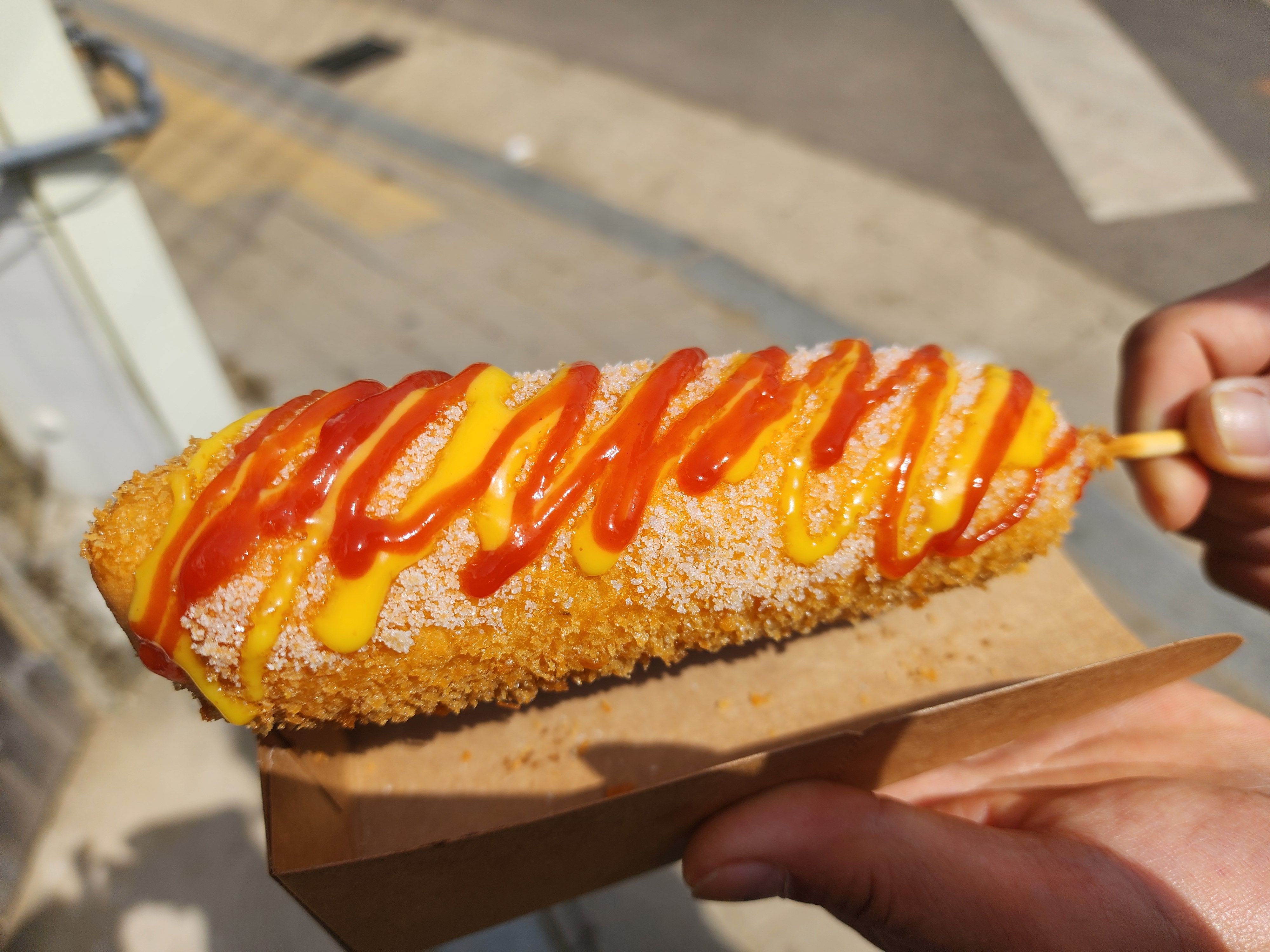 줄이 엄청 긴 편으로 주말에는 10분 이상 기다려야 되는 곳으로 수제소시지를 사용하여 핫도그 퀄리티가 좋은 간식거리입니다.