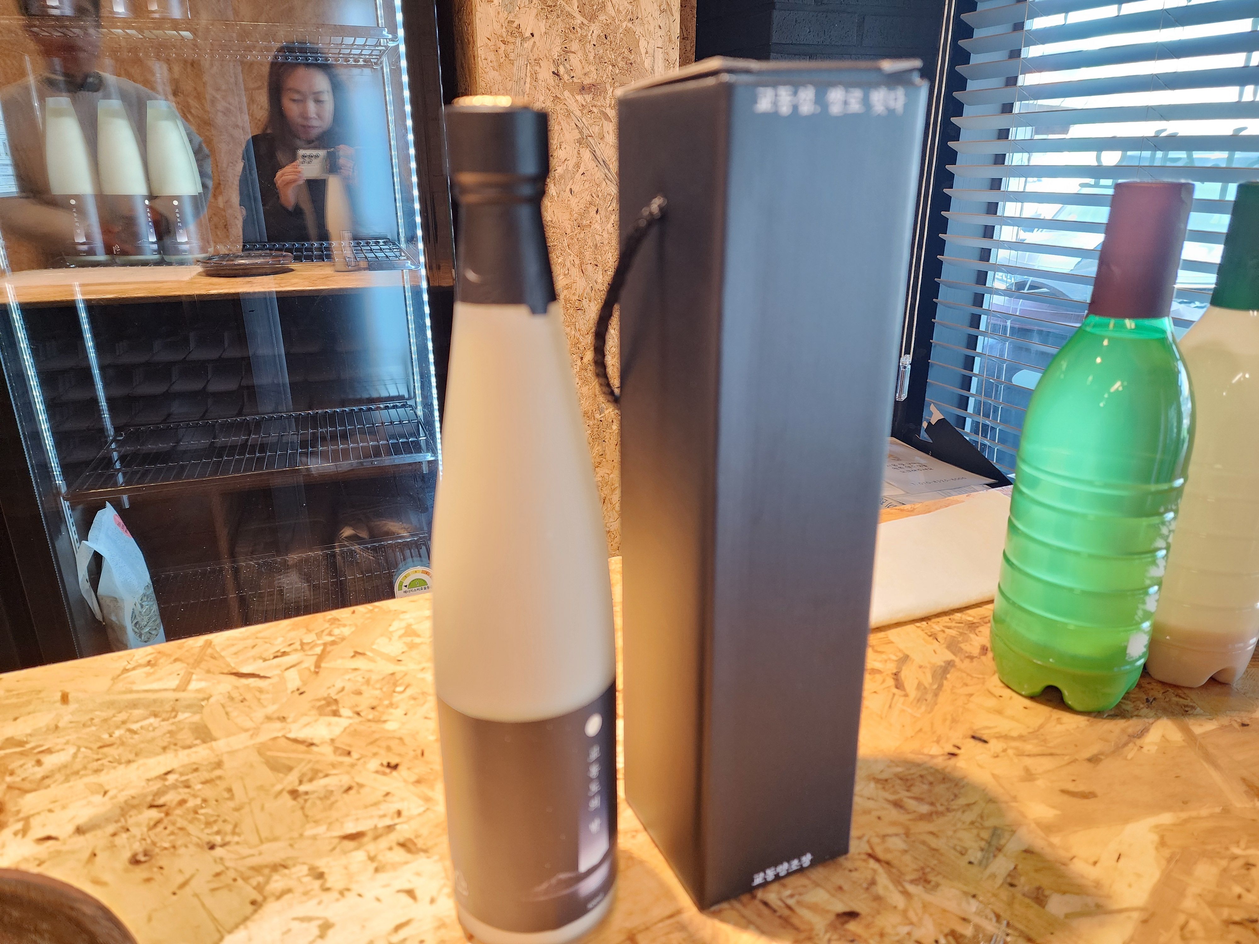 날씬한 병에 담아 판매하는 막걸리는 9,000원으로 선물하기 좋은 아이템입니다.