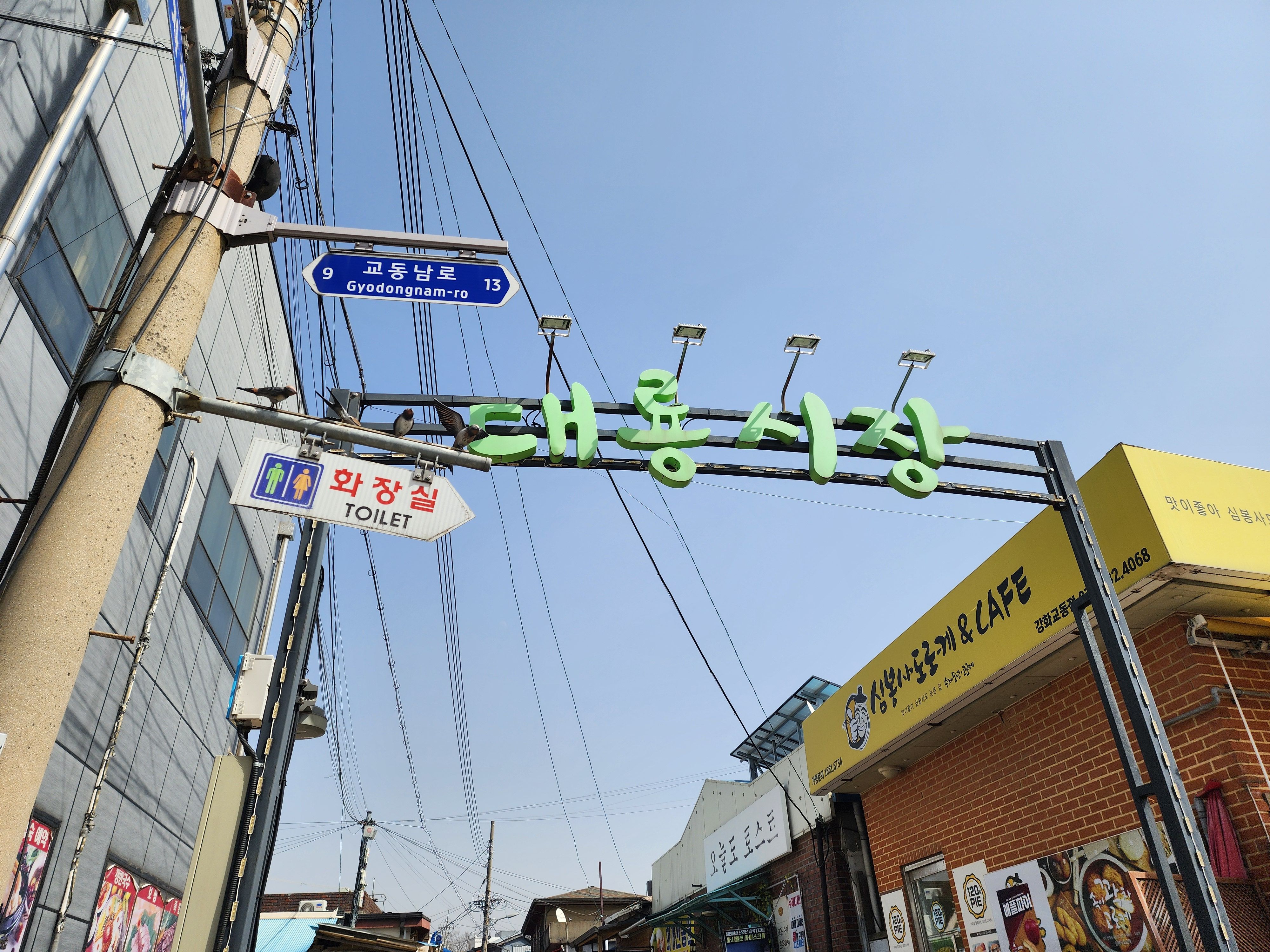 대룡시장 밖으로 나와서 바로 옆쪽에 위치한 파머스 마켓에 위치한 교동 밀크티 카페.