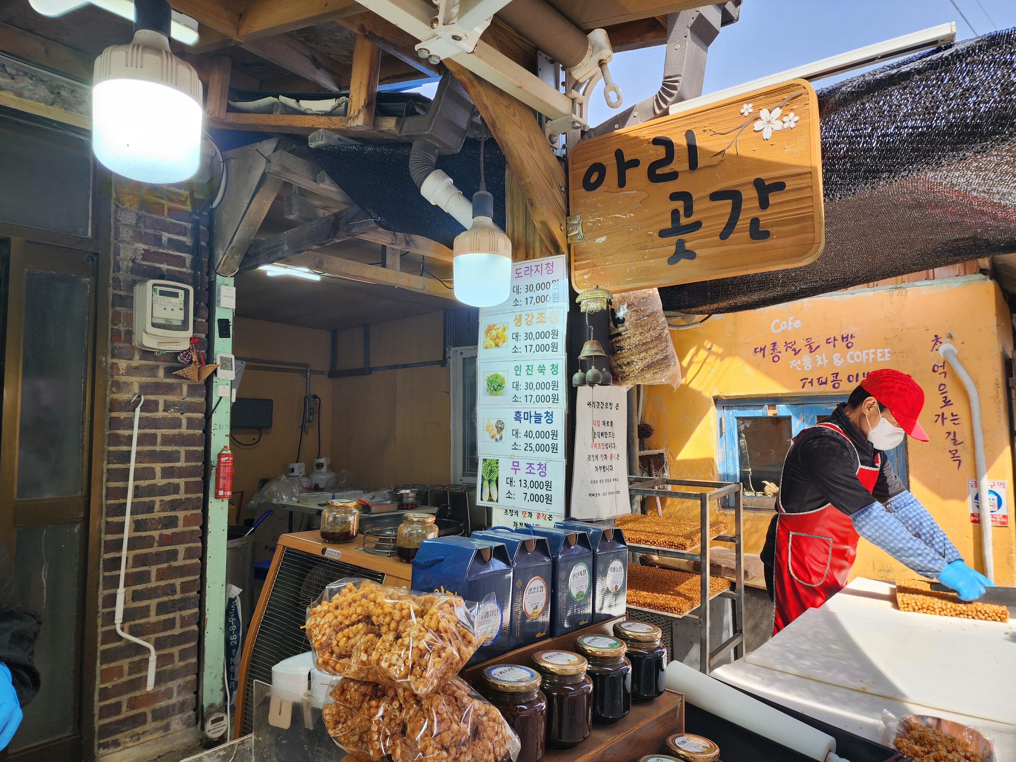 전국적으로 매장이 많이 있는 아라곳간은 유과와 오란다를 판매하는 곳으로 유명하죠.
