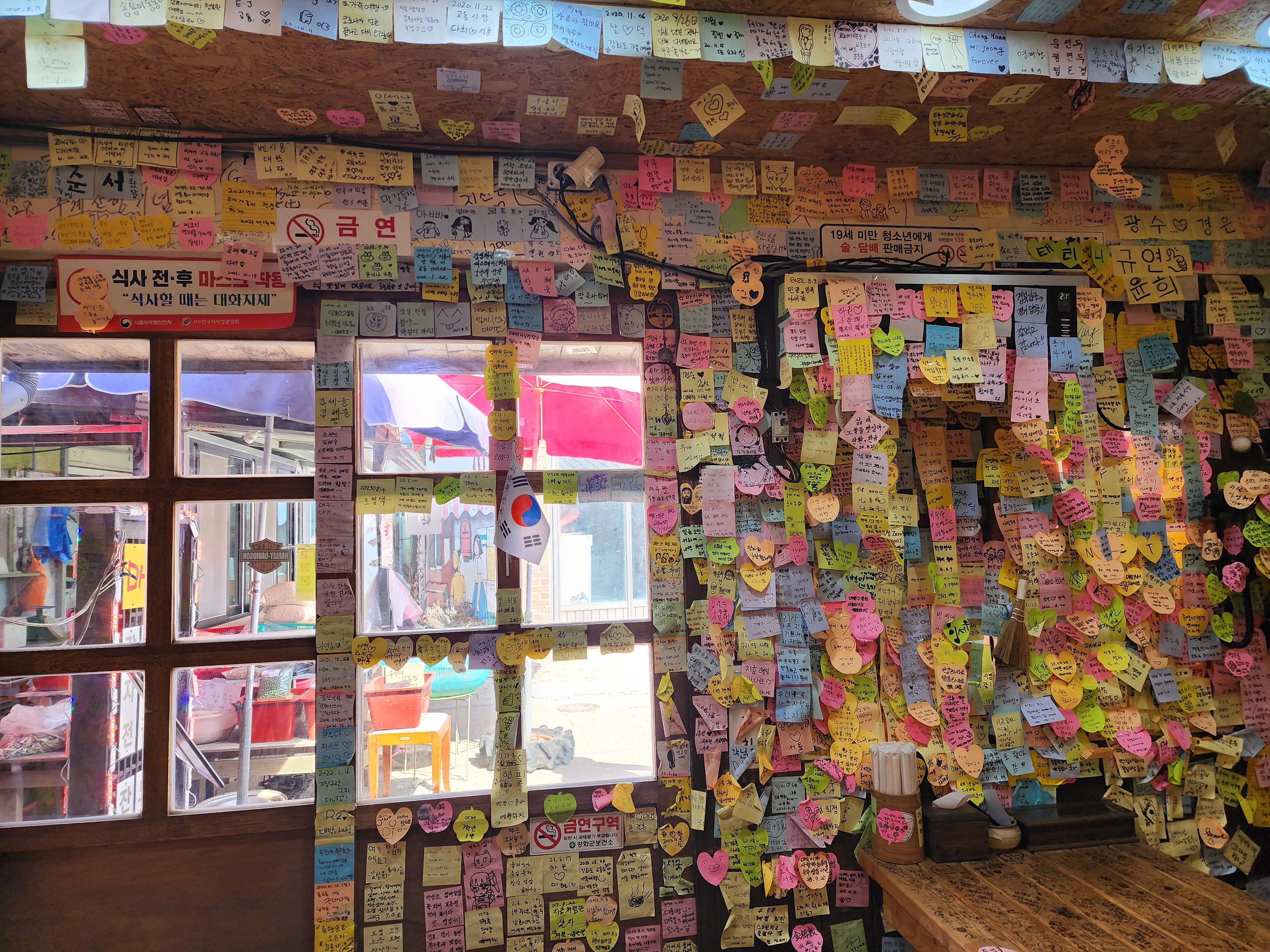 포스트잇이 벽면 전체를 덮고 있어서 이곳의 인기도를 짐작할 수 있는데요.