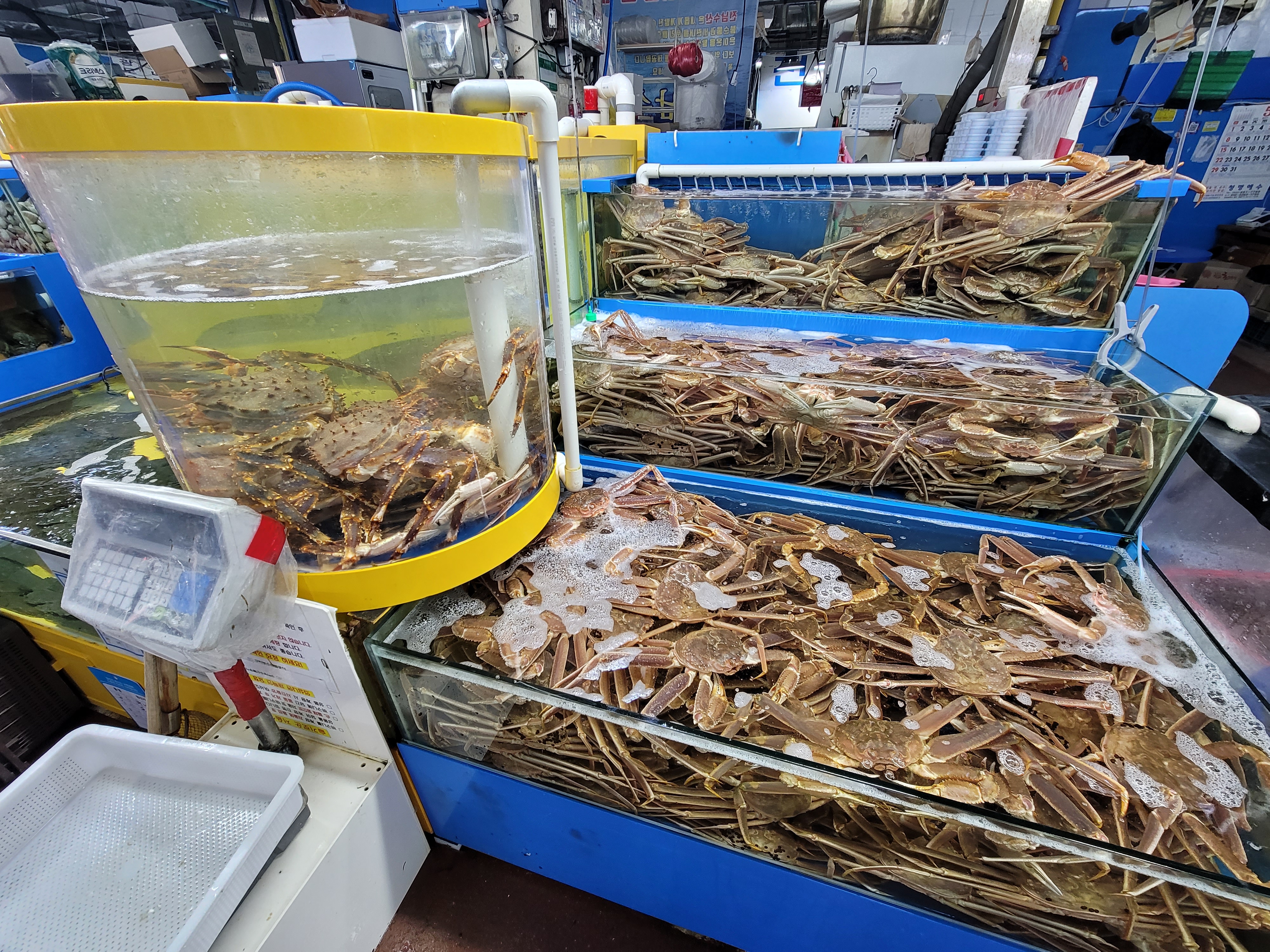 요즘 러시아 대게시세가 많이 좋아졌습니다. 러시아 전쟁으로 인해서 가격이 폭락한 후에 그 비싸다는 러시아 대게를 요즘은 자주 먹게 되네요.이상하게도 현지에서 파는 수산물은 왜 그렇게 비싼지 모르겠습니다. 관광객이라고 하면 한번 먹고 갈 사람들이라고 생각하는 건지 서울에서 먹는 시세보다 한참 비싸서 실망한 경험이 많네요. 그래서 요즘엔 활수산물을 먹으려면 가까운 구리 농수산물 도매시장으로 가곤 합니다. 시장 내에 대게시세 차이가 그리 크지 않아서 바가지를 쓸 염려는 없는 것 같습니다. 차이가 있다면 몇천 원 정도 차이 나는 거랑 서비스덤 정도이니 그 정도는 감수해야겠지요.