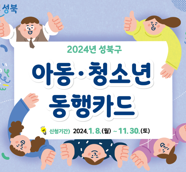 성북구에서 2024년도에 아동청소년을 대상으로 동행카드를 지원하는 사업을 실시합니다.