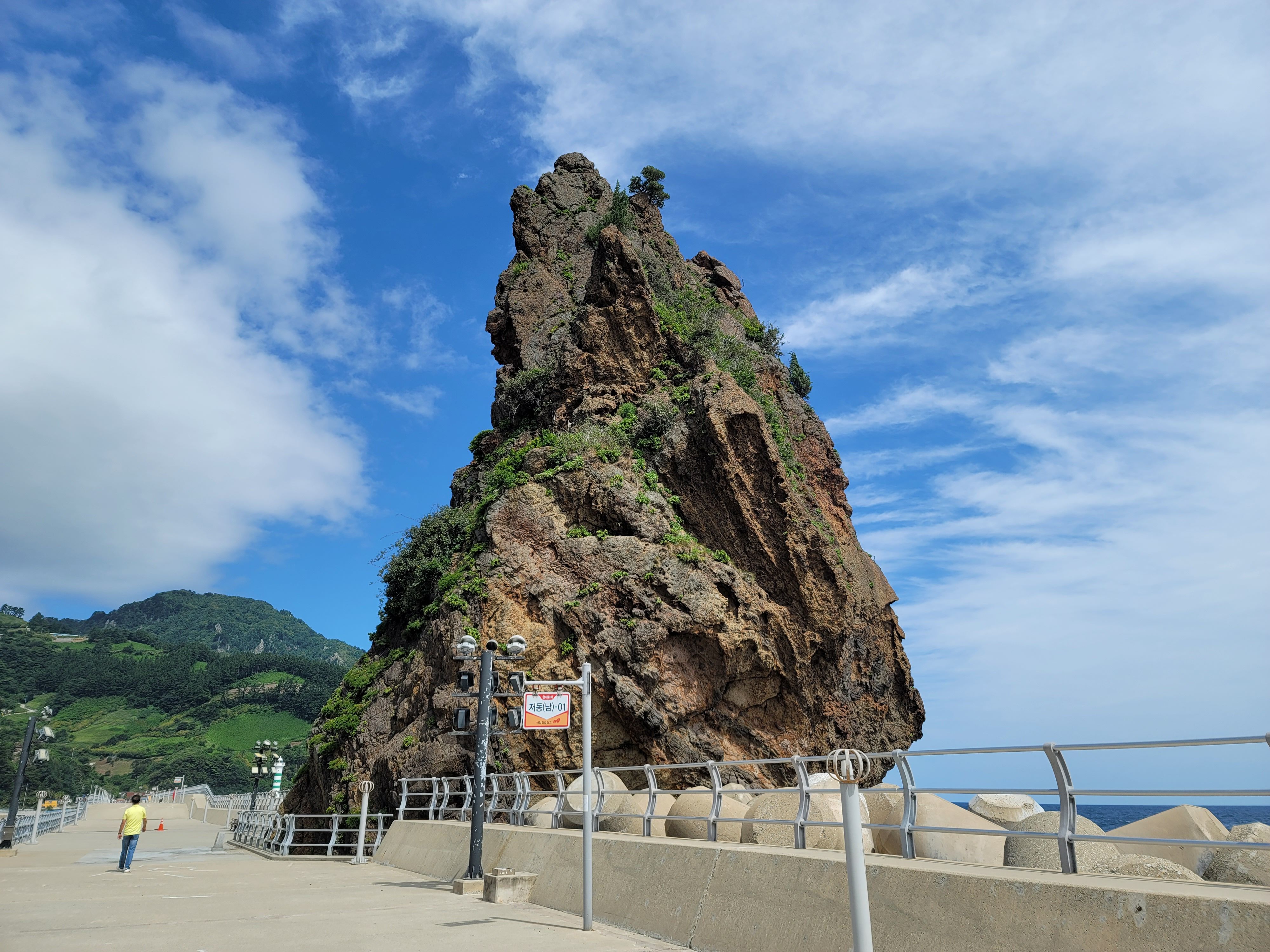 저동항에 가면 대표적인 상징성을 가진 바위로 여겨지며 그 크기도 꽤 커서 눈에 띌 정도의 크기를 자랑합니다. 저동항은 울릉도 오징어의 대부분이 취급되는 항구랍니다. 오징어 성어기인 9월~11월에는 아주 바쁜 곳이죠. 해마다 8월이 되면 저동항 일대에는 5일 동안 오징어 축제가 열리며 저동어화(저동 야간 오징어잡이 배의 불빛을 말함)는 울릉 8경의 하나로 꼽히기도 합니다. 저동항 근처의 내수전 일출전망대에서는 저동항의 모든 모습을 한눈에 볼 수 있으며 저동항 부근의 관광지로는 관해정, 봉래폭포, 내수전약수터와 내수전 몽돌해변등이 있으며 울릉도 대표항구인 도동항과도 가깝답니다.